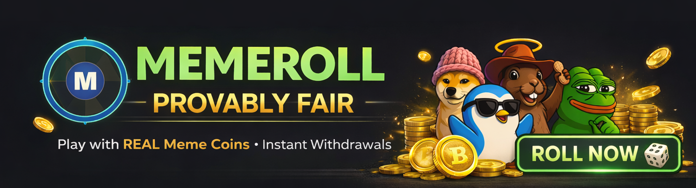 MemeRoll is a new generation of crypto casinos. We combine the volatility of meme coins with the transparency of blockchain technology. It's a simple, fast, and fair "roll" game where you can multiply your bag or just have fun.